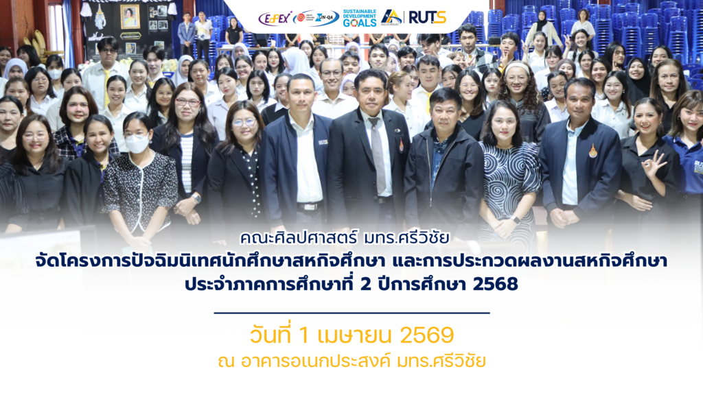 คณะศิลปศาสตร์ มทร.ศรีวิชัย จัดโครงการปัจฉิมนิเทศนักศึกษาสหกิจศึกษา และการประกวดผลงานสหกิจศึกษา ประจำภาคการศึกษาที่ 2 ปีการศึกษา 2568 เพื่อเตรียมความพร้อมและสะท้อนผลการเรียนรู้ของนักศึกษาหลังเสร็จสิ้นการปฏิบัติงานสหกิจศึกษาในสถานประกอบการ